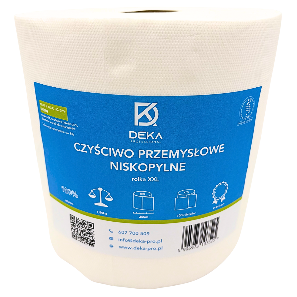 Biały ręcznik papierowy celulozowy z grupy PREMIUM to produkt najwyższej jakości ponieważ jest niepylny, bardzo wytrzymały oraz mega chłonny. Czyściwo DK009 to duża rolka o długości 250 metrów co daje aż 1000 odcinków – dlatego jest bardzo wydajne. Czyściwo celulozowe wyprodukowane ze 100% wyselekcjonowanej celulozy o wysokiej klasie czystości dlatego też idealnie nadaje się do użytku profesjonalnego. Dlatego też w naszej ofercie wysokiej klasy czyściwa ze 100% celulozy oznaczyliśmy jako PREMIUM +